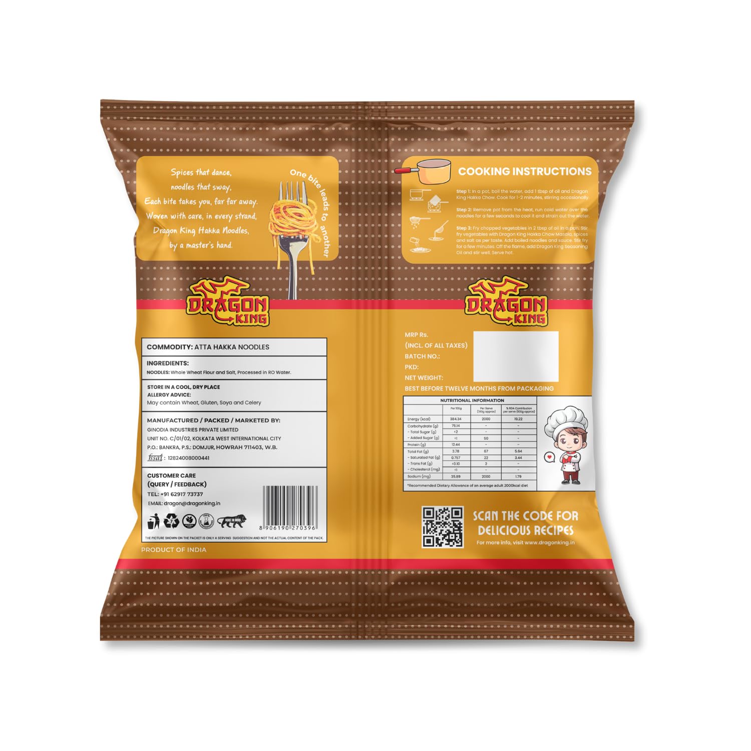 Looking for a healthier twist to your favorite noodles? Dragon King Atta Hakka Noodles are crafted with 100% whole wheat flour (atta) – no maida, no nonsense. Enjoy that delicious Hakka-style taste without compromising on health. Whether you’re stir-frying with veggies, tossing it in a spicy sauce, or serving it desi-style, these noodles are the perfect canvas for your creativity. Proudly made in India, Dragon King noodles are free from artificial colors and preservatives, cook in just 5–7 minutes, and bring the goodness of atta in every slurp. Perfect for families, fitness-conscious foodies, and anyone who craves wholesome indulgence. Key Features: ✅ Made with 100% Atta – No maida, no guilt ✅ Healthier Choice – High in fiber, better digestion ✅ Restaurant-style Taste – Authentic Hakka flavor at home ✅ Quick to Cook – Ready in just 5–7 minutes ✅ Versatile – Perfect for Chinese, fusion, and desi-style recipes ✅ FSSAI Certified – Trusted quality, hygienically packed